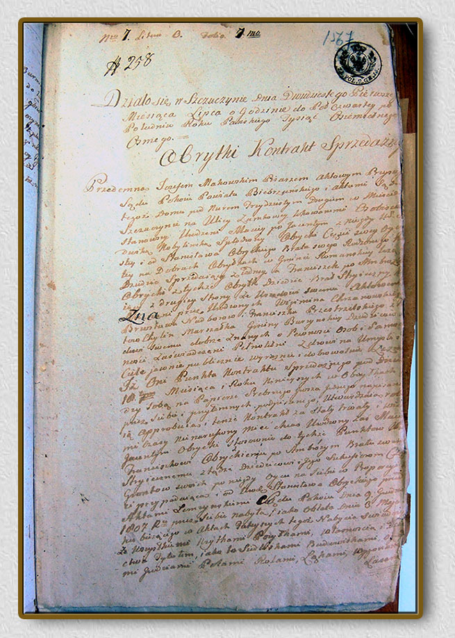 Akt sprzedaży części dóbr Obrytki par. Romany z 1808 roku - część pierwsza.