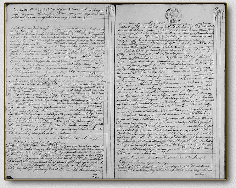 Część druga aktu sprzedaży dóbr we wsi Obrytki, w parafii Romany - z 1808 roku, między Maciejem - synem Jacentego (Hiacentego) Obryckiego a Franciszkiem Obryckim - synem Ambrożego. Ambroży i Jacenty to bracia rodzeni. Kupujący - Maciej jest bratem stryjecznym sprzedającego swój majątek - Franciszka.