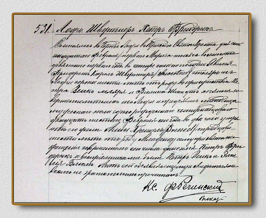 Akt urodzenia Piotra-Fryderyka Szwertner w Łodzi , z 1891 roku - męża Genowefy-Anny z d. Szczęsnej.