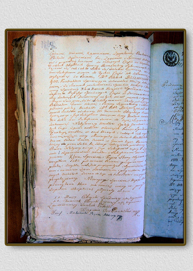 Część druga aktu sprzedaży dóbr we wsi Obrytki, w parafii Romany - z 1808 roku, między Maciejem - synem Jacentego (Hiacentego) Obryckiego a Franciszkiem Obryckim - synem Ambrożego. Ambroży i Jacenty to bracia rodzeni. Kupujący - Maciej jest bratem stryjecznym, sprzedającego swoją część majątku rodowego - Franciszka.