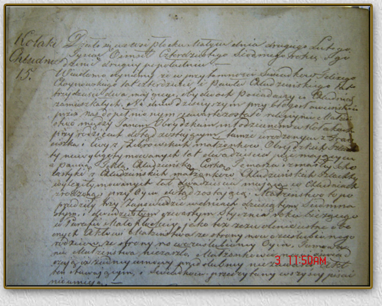 Kossaki - Ponikly Stok - rok 1872. Siedemnastoletni Adolf-Franciszek Obrycki - syn Jana-Leona i Tekli, urodzony 02 kwietnia 1855 roku we wsi Kołaki-Strumienie. Adolf - pada ofiarą trzeciego nawrotu epidemi cholery w Królestwie Polskim i umiera, w Kossakach - Ponikly Stok , 02 listopada 1876 roku, przeżywszy tylko dwadzieścia jeden lat. Zdjęcie Adolfa-Franciszka jest najstarszym, fotograficznym portretem, obrazującym przodka z rodziny Obryckich.