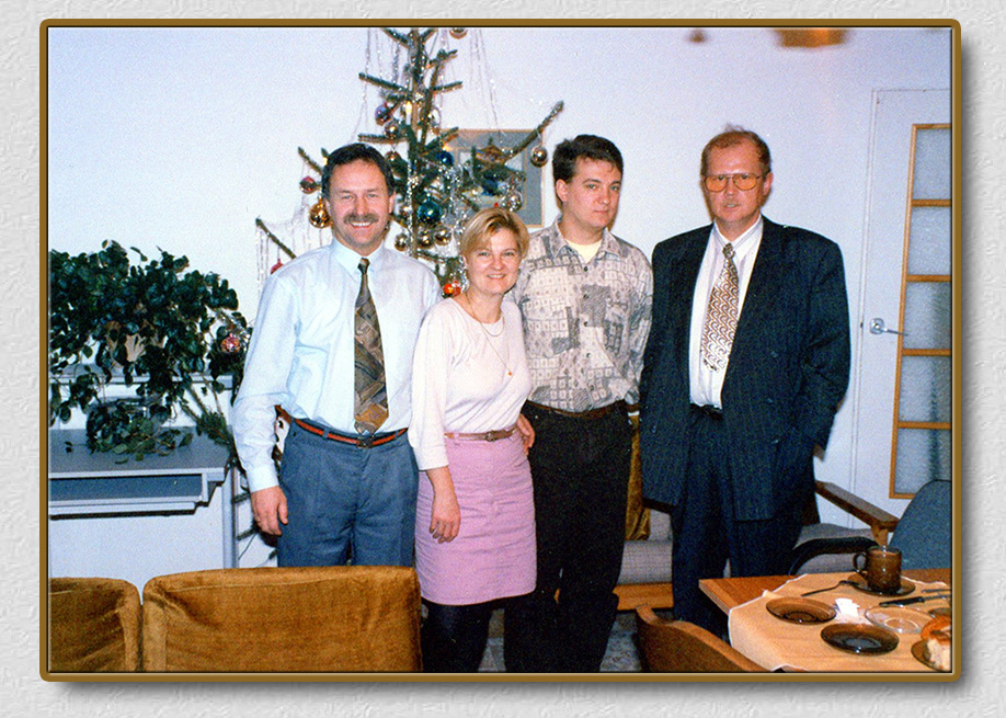 Łomża, rok 1997. Od lewej strony zdjęcia: Jerzy Szczęsny, żona Jerzego, Mariusz-Wawrzyniec Obrycki i Waldemar-Jacek Obrycki .