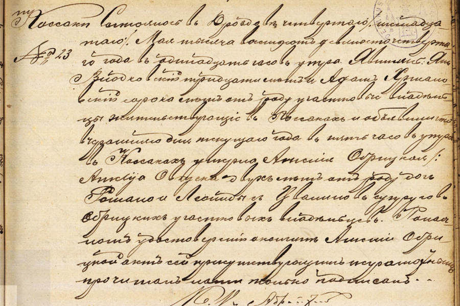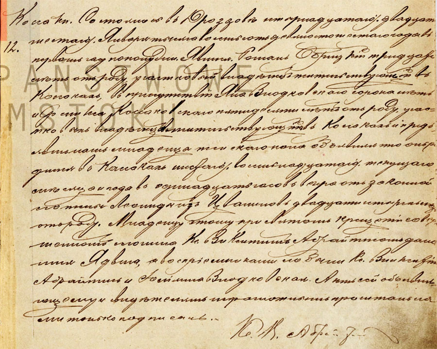 Kopia oryginału aktu urodzenia Franciszka Ksawerego Obryckiego.