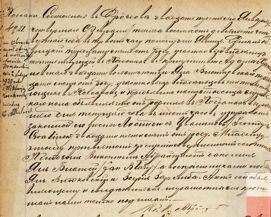 Kopia oryginału aktu urodzenia Jana Błażeja Obryckiego, urodzonego w 1894 roku .