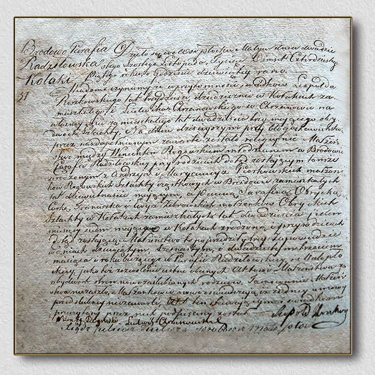 Pierwszym jest Teofila Emilia Rogowska urodzona w 1847 roku. Teofila w 1866 roku bierze ślub w Radziłowie z Janem Kuligowskim - szlachcicem herbu Drogomir, synem Macieja i Katarzyny Szczuka.