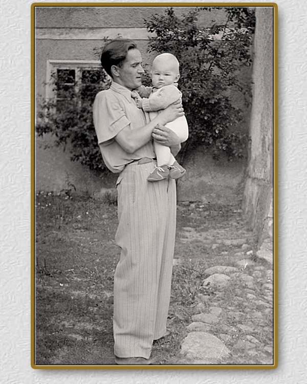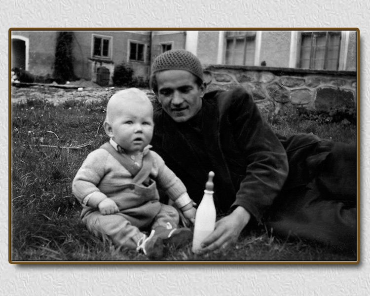 Bohdan Obrycki z synem Waldemarem. Mrągowo, 1952 rok.