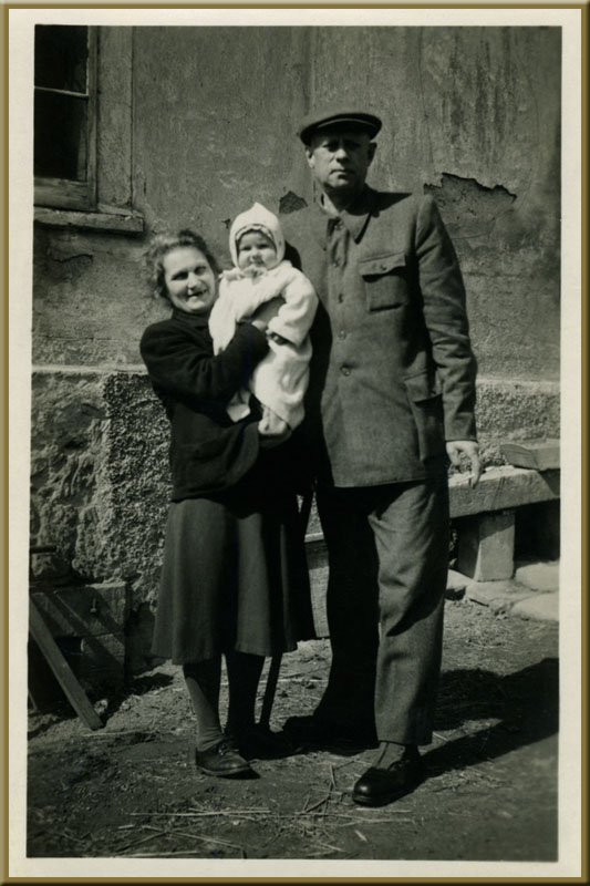 Dolny Śląsk - Dłużec, rok 1952. Zofia Szczęsna - trzymająca syna Leszka i jej mąż, Zbigniew Szczęsny - trzymający syna Wladka.