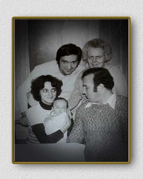 Warszawa - rok 1978. Zdzisław Obrycki z żoną Haliną-Julią /na drugim planie/ i córką Marią Nowicką, z d. Obrycką, jej mężem Andrzejem i ich kilkumiesięczną córką Małgorzatą /na pierwszym planie/.