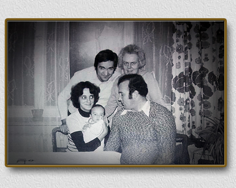 Warszawa - rok 1978. Zdzisław Obrycki z żoną Haliną-Julią /na drugim planie/ i córką Marią Nowicką, z d. Obrycką, jej mężem Andrzejem i ich kilkumiesięczną córką Małgorzatą /na pierwszym planie/.