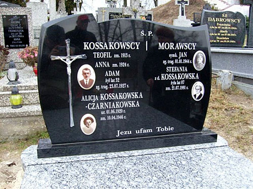 Adam Kossakowski umiera w Kossakach-Ponikly Stok 23 lipca 1927 roku, mając 32 lata, w wyniku rany postrzałowej z broni myśliwskej, wystrzelonej przypadkowo przez jego szwagra Jana, w czasie kiedy obaj czyścili broń przygotowując się do polowania.