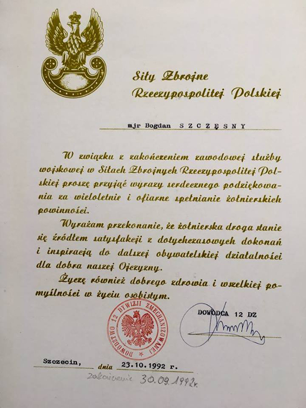 Bohdan zakończył zawodową karierę wojskową w 1992 roku, w stopniu majora.