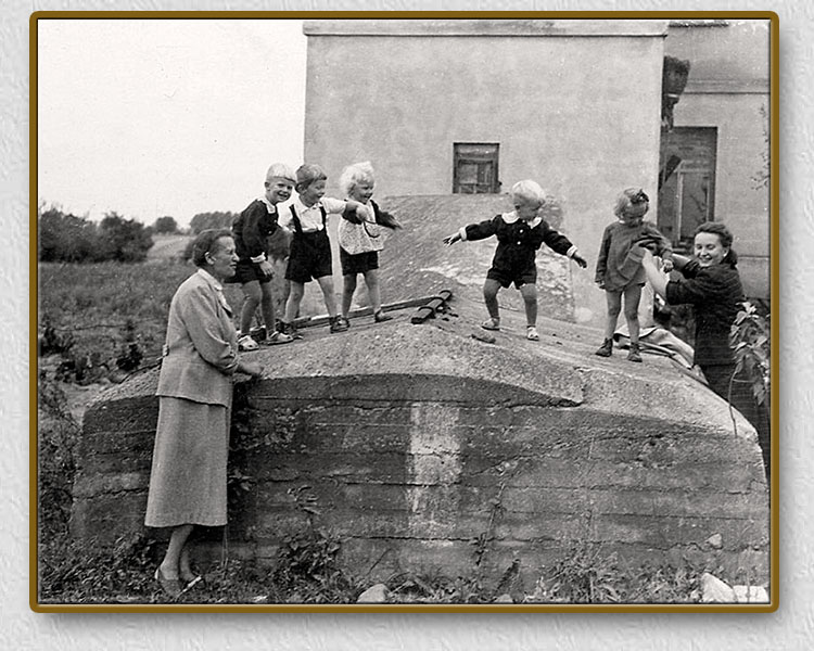 Elżbiecin, rok 1953. Od lewej: Genowefa Szwetner, Władysław-Roman Grzybowiński, Bohdan Szczęsny, Waldemar-Jacek Obrycki, Tomasz Grzybowiński, Elżbieta Szczęsna i Halina Grzybowińska.