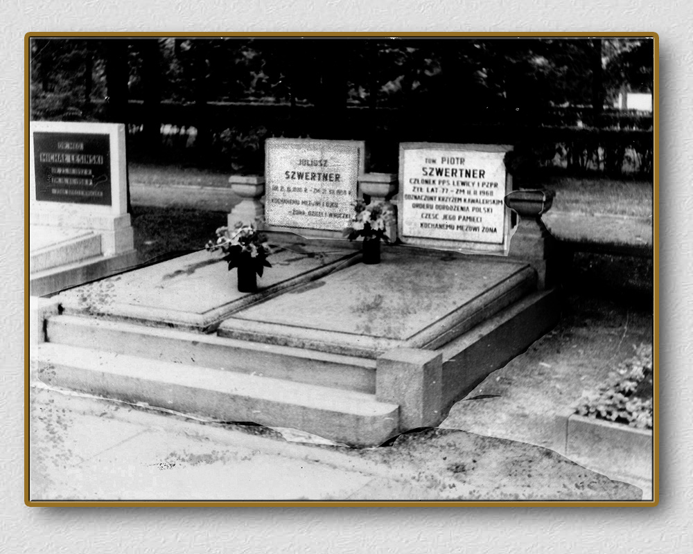 Grób Piotra Szwertner / zmarłego na zawał 11.02.1968r. w Łodzi/ i jego brata Juliusza, na cmentarzu Komunalnym Łódź-Doły, kwatera IV, rząd 8, grób 15 - przed zmianą tablic nagrobkowych.