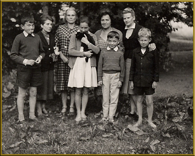 Drozdowo 1 lipca 1962 roku. Dzień imienin cioci Haliny. Od lewej stoją: Jacek Pusz, ciotka Agata - kuzynka Tadeusza, Andzia - pracownica ogrodowa, Marta /Isia/ Pusz, Halina Pusz, Seweryn Pusz, Jadwiga Wiesława Obrycka-Szczęsna i jej syn Waldemar Jacek Obrycki.