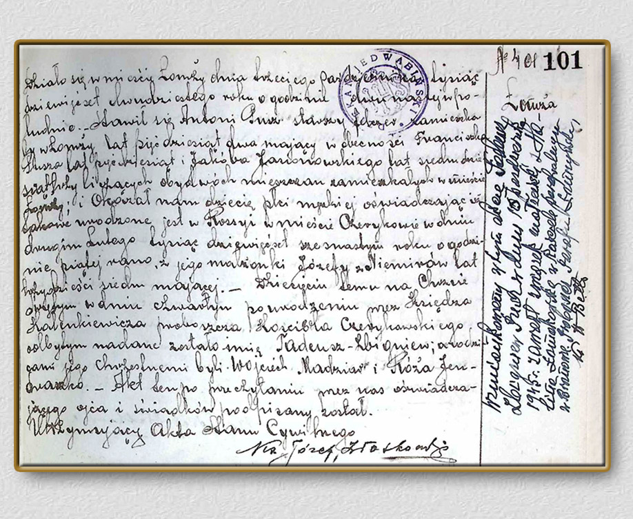 Akt urodzenia Tadeusza-Zbigniewa Pusz urodzonego 02 lutego 1916 roku w mieście Charkowie w Rosji.