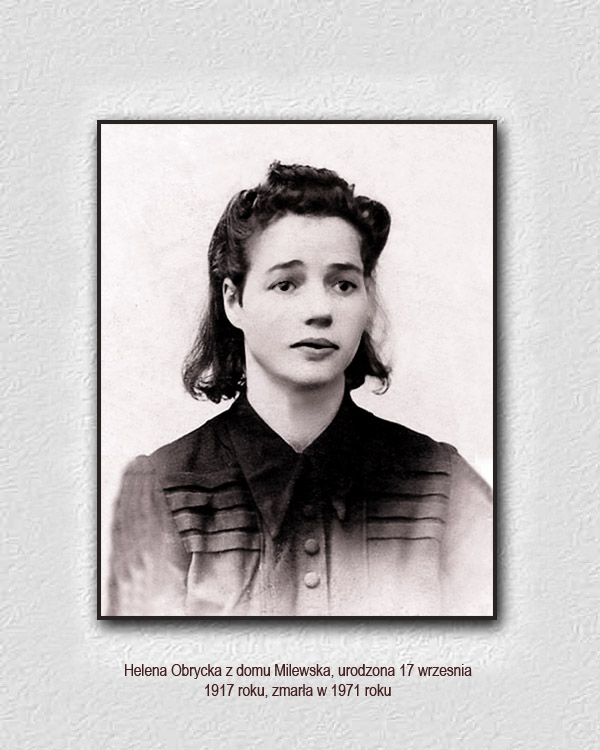 W 1948 roku Helena Milewska poślubia Mieczysława Obryckiego, urodzonego 21 stycznia 1921 roku w Kossakach-Ponikly Stok - na ziemi wiskiej powiatu łomżyńskiego, w szlacheckiej rodzinie Jana-Błażeja Obryckiego - szlachcica herbu Prus i Wiktorii z d. Kossakowskiej - szlachcianki herbu Slepowron. Z ich związku rodzi się dwie córki - Maria-Barbara, urodzona 17 listopada 1949 roku i Halina, urodzona 13 maja 1952 roku.