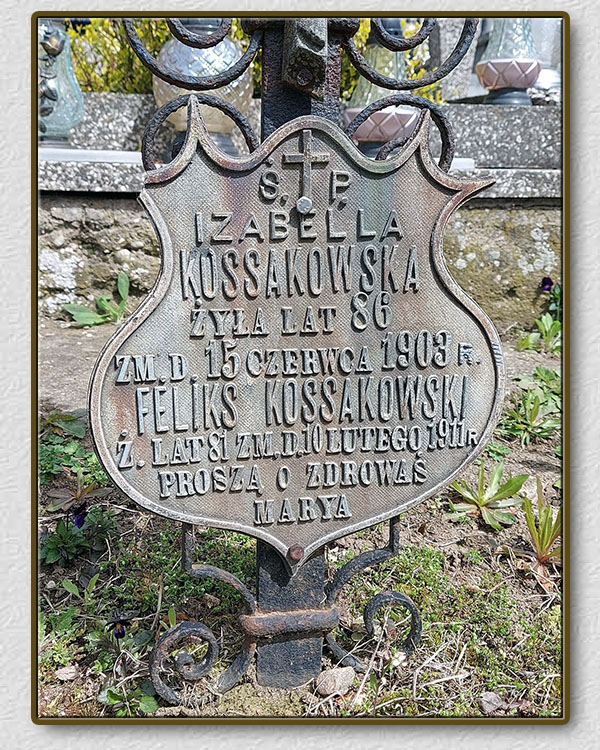 Feliks Teodor Kossakowski zmarł w Kossakach-Ponikly Stok, 10 lutego 1911 roku, przeżywszy 84 lata. Jego piętnaście lat starsza żona - Izabella-Józefa , zmarła osiem lat wcześniej - 15 czerwca 1903 roku.