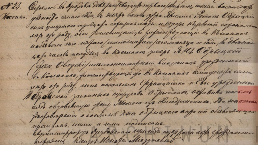 Akt zgonu Jana-Leona Obryckiego - z roku 1897 - syna Franciszka Obryckiego i Ewy, z domu Żebrowskiej
