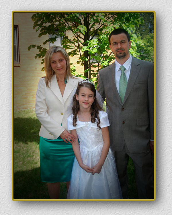 Tomasz i Katarzyna Kossakowscy z córkami. Od lewej stoją: Katarzyna, narzeczony Aleksandry, Aleksandra i Tomasz. Niżej - Izabella i Klaudia.