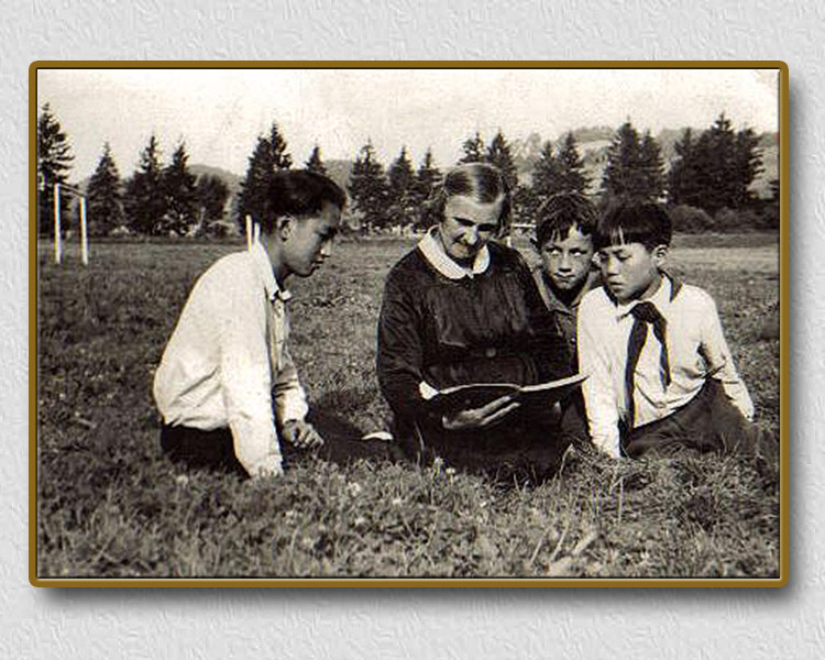 Płakowice - 1956 rok. Maria Szanter z uczennicami z Ośrodka Wychowawczego dla koreańskich sierot, na przedmieściach Lwówka Śląskiego , na Dolnym Śląsku .