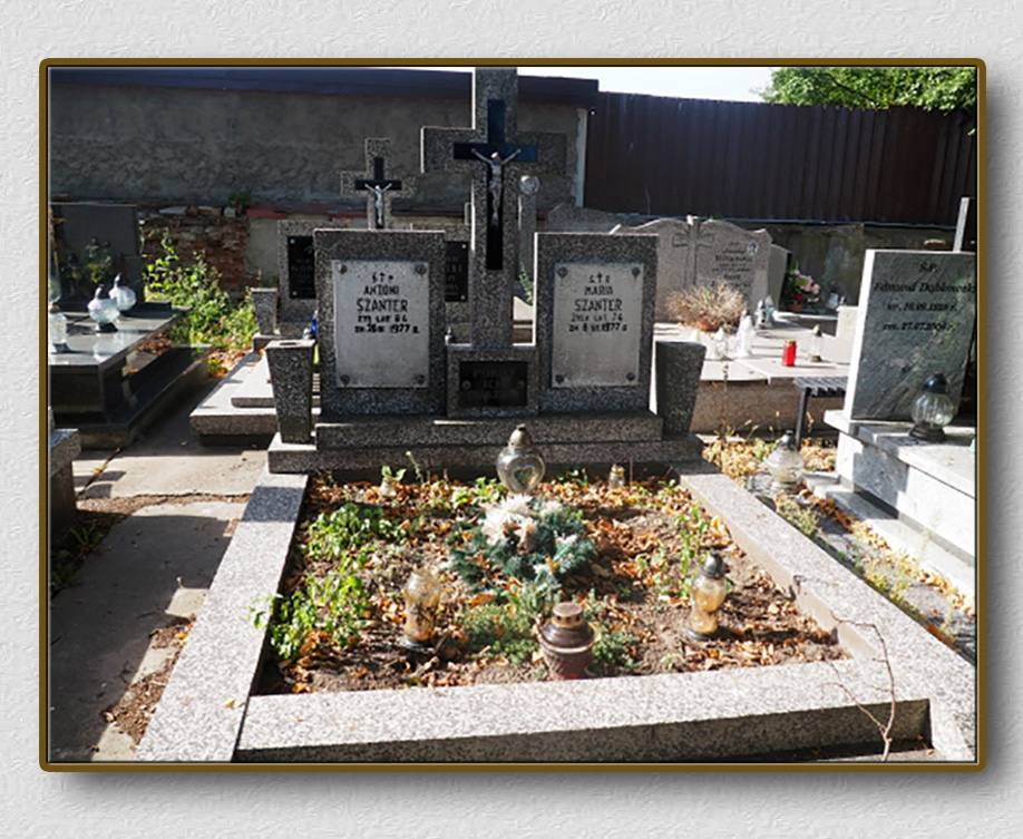 zm. 29-9-1972r./ , Stanisława Szanter /ur. w 1886 r., żył 101 lat - zm. 11-09- 1987r./ - brata Antoniego, i Franciszki Czyba - siostry Antoniego i Stanisława /ur.9-3-1885r., zm.19-4-1965r./. Grób nr 1 w sektorze 6B, na cmentarzu katedralnym w Łomży.
