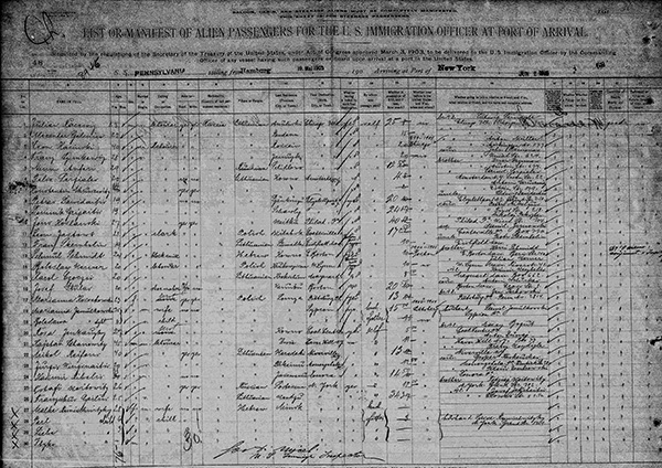 Kopia dokumentu imigracyjnego z 02 czerwca 1905 roku, z przyjazdu Marianny Kossakowskiej do USA,