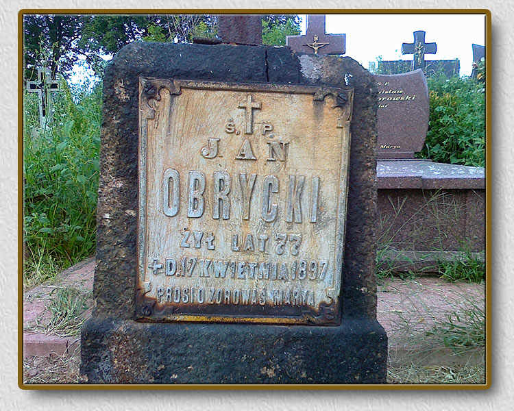 Kossaki - Ponikly Stok - rok 1872. Siedemnastoletni Adolf-Franciszek Obrycki - syn Jana-Leona i Tekli, urodzony 02 kwietnia 1855 roku we wsi Kołaki-Strumienie. Adolf - pada ofiarą trzeciego nawrotu epidemi cholery w Królestwie Polskim i umiera, w Kossakach - Ponikly Stok , 02 listopada 1876 roku, przeżywszy tylko dwadzieścia jeden lat. Zdjęcie Adolfa-Franciszka jest najstarszym, fotograficznym portretem, obrazującym przodka z rodziny Obryckich.