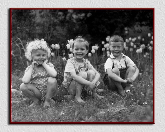 Elżbiecin, lato 1953 roku. Od lewej: Elżbieta Szczęsna, Waldemar - Jacek Obrycki i Bohdan Szczęsny.