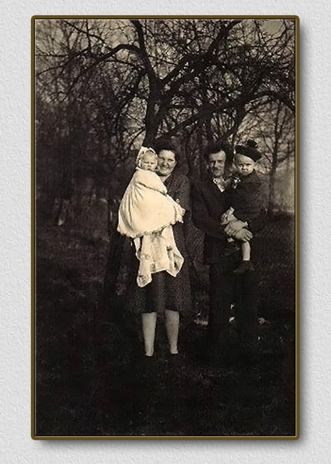 Dolny Śląsk - Dłużec, rok 1952. Zofia Szczęsna - trzymająca syna Leszka i jej mąż, Zbigniew Szczęsny - trzymający syna Wladka.