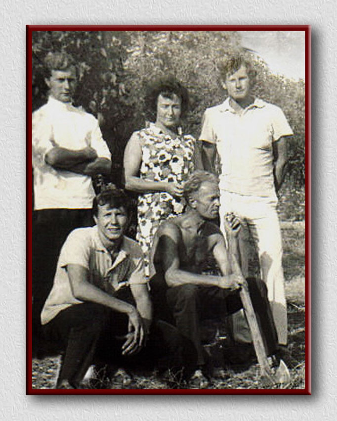 Elżbiecin - rok 1970. Od lewej stoją: Bohdan Szczęsny, Irena Szczęsna i Lech Szczęsny. Od lewej, siedzą: Władysław Szczęsny i Jerzy Szczęsny.