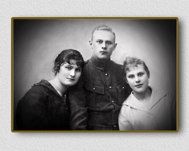 Łomża, rok 1921. Zofia Szczęsna z domu Sieńkowska ze świeżo poślubionym mężem Czesławem i jego najmłodszą siostrą Jadwigą - później z męża - Frydrych.
