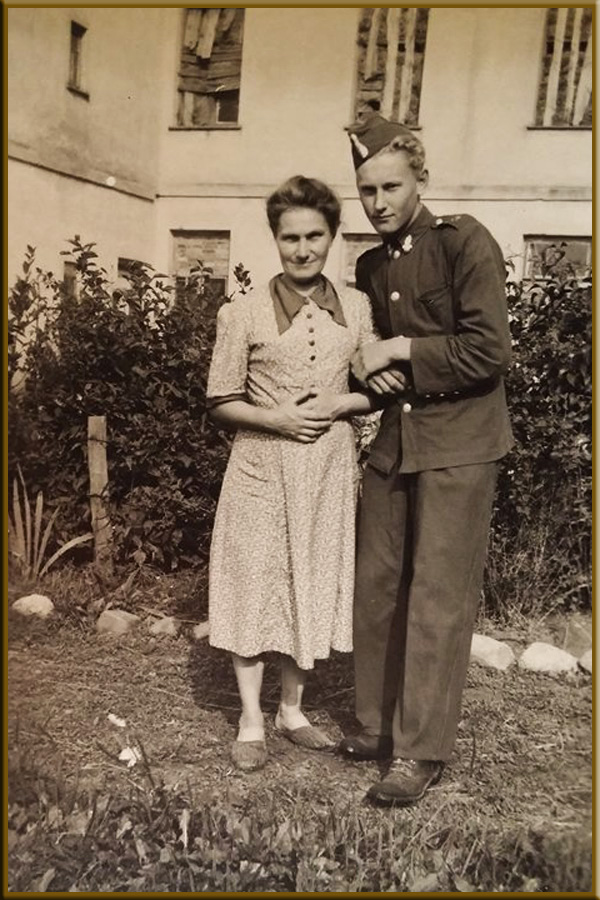 Elżbiecin, 01 września 1949 roku. Zofia Szczęsna z synem Ludwikiem, który przyjechał do domu, na przepustkę z obowiązkowej służby w armii polskiej.