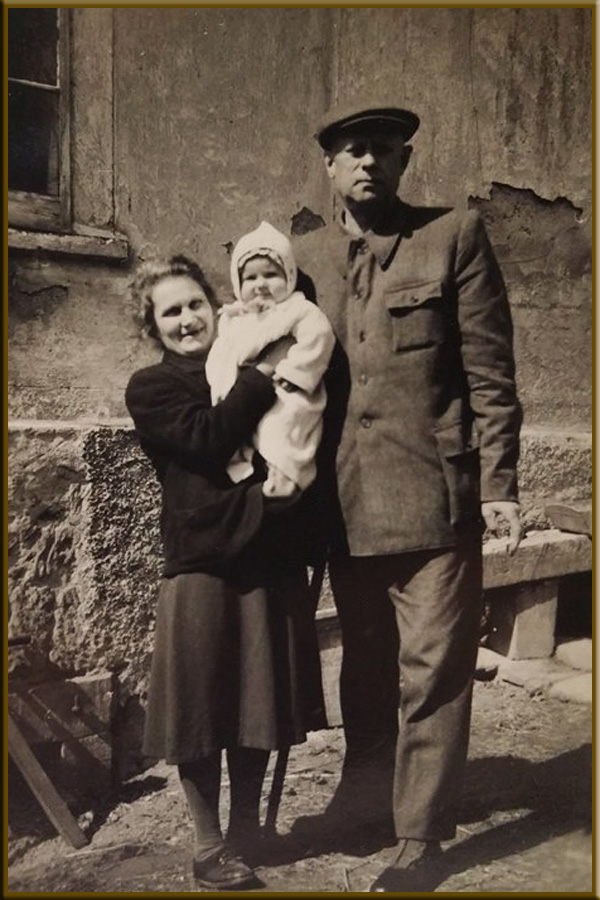 Dłużec, 10 kwietnia 1950 roku. Spotkanie Zofii i Czesława Szczęsnych z ich pierwszym wnukiem, Władysławem Szczęsnym - synem Zbigniewa.